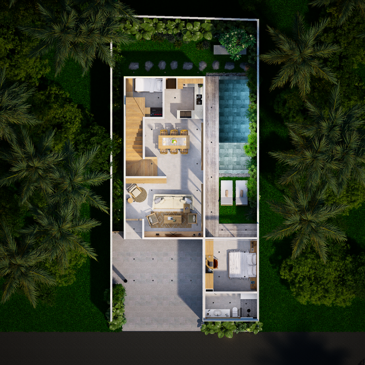 - Private landscaped garden & pool deck